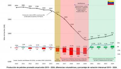 A pesar de esta dura situación, ciertos cambios han ocurrido a nuestro favor, las estrategias desarrolladas por la gerencia petrolera del país, aunado a las “flexibilizaciones y licencias’’, han permitido que PDVSA se mantenga en ascenso por cuarto año consecutivo, dando signos de recuperación, sumando barriles y saliendo del oscuro sótano de aquellos meses del 2020, cuando las MCU y la pandemia del COVID-19, nos llevaron a bajos niveles históricos de producción. Durante el 2024 la producción petrolera fue de 921.000 barriles
