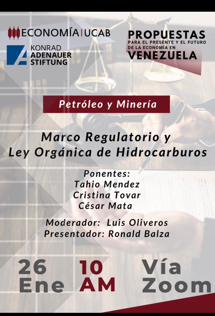 La Escuela de Economía de la Universidad Católica Andrés Bello y la Konrad Adenauer Stiftung auspician el conversatorio sobre el presente y futuro de la industria petrolera venezolana con los abógados Tahio Mendez, Cristina Tovar y César Mata https://ucab.zoom.us/meeting/register/tJArf-yspjguGNaw-wrvmqtq5TKkVc1CIEG_